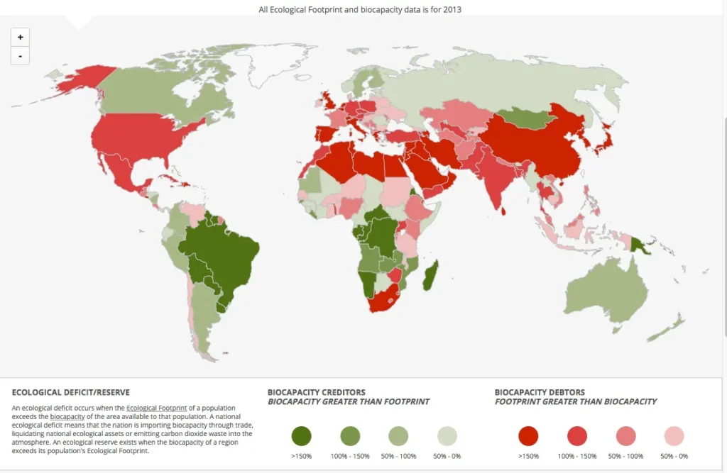 പല രാജ്യങ്ങളിലും പ്രകൃതി ചൂഷണവും മലിനീകരണവും അനിയന്ത്രിതമാകുന്നുണ്ട്. അവിടങ്ങളിലെ പാരിസ്ഥിതിക കാല്പാട് അപകടത്തിലാണ്. അപകടാവസ്ഥയിലുള്ള പാരിസ്ഥിതിക കാല്പാട് ചുവന്ന നിറത്തിലാണ് സൂചിപ്പിക്കുന്നത്. നമ്മുടെ പാരിസ്ഥിതിക കാല്പാട് ചുവന്നതാവുകയും അത് ലോകം മുഴുവന്‍ വ്യാപിക്കുകയും ചെയ്താല്‍ ഭൂമിയുടെ മരണമാണ് സംഭവിക്കുക. ആ ദിവസത്തെ ‘ഓവര്‍ഷൂട്ട് ഡെ’ എന്നാണ് വിളിക്കുന്നത്.